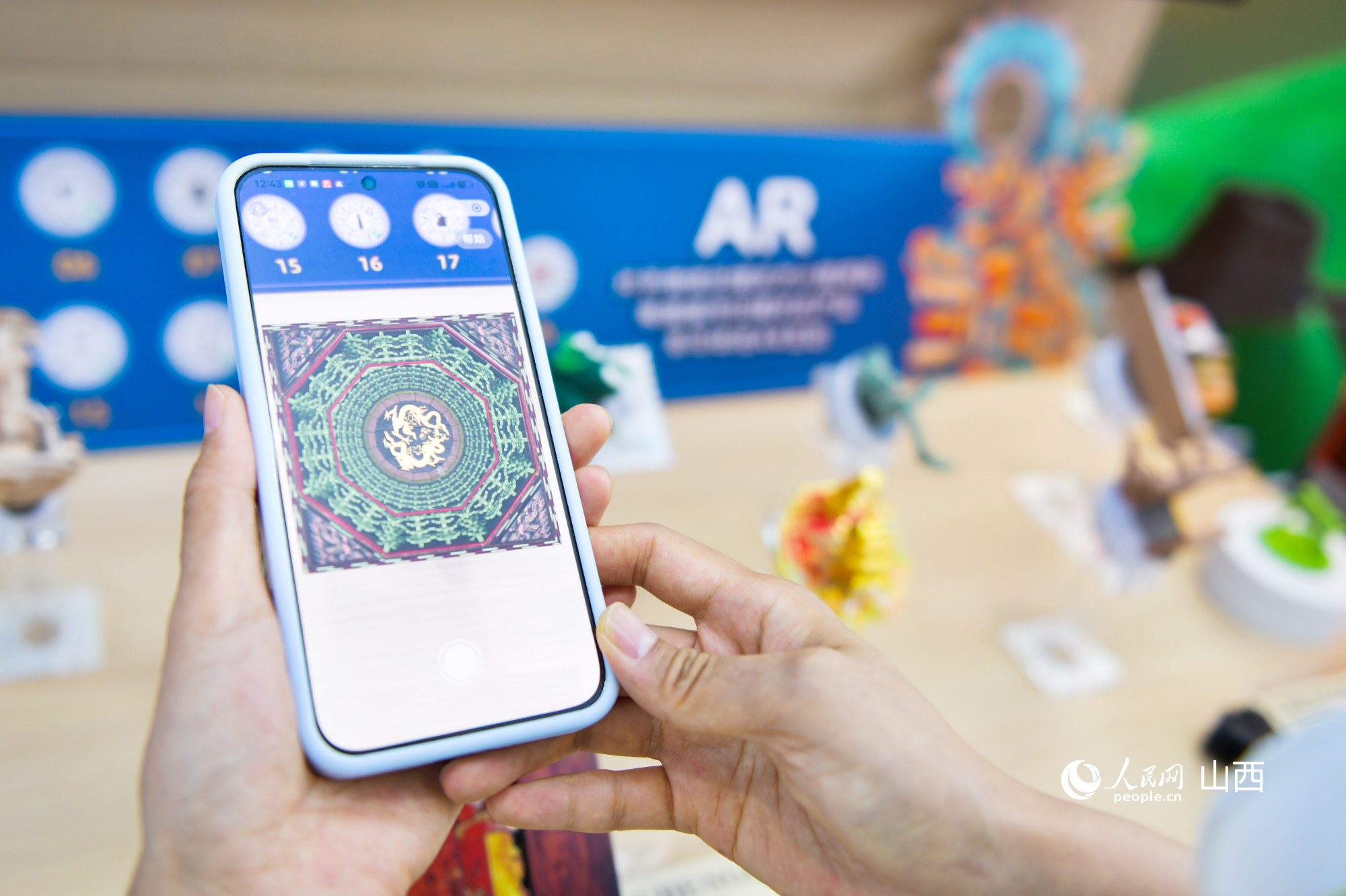 AR“解構”山西古建精美藻井。人民網記者 焦搏文攝