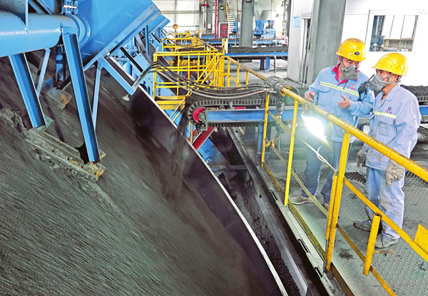 八月二十一日,在代县久力新型球团厂,工人们正在进行球团生产。为了进一步延伸企业产业链条,代县明利矿业有限公司投资两亿余元新上了久力新型球团项目,由原来的铁矿石开采、磨选为主,升级改造为球团加工生产。年产新型球团一百五十万吨,可实现工业总产值十五亿元,上缴税费一亿多元,提供就业岗位近两百个,对代县矿业经济转型升级将起到积极的推进作用。(记者刘通摄)