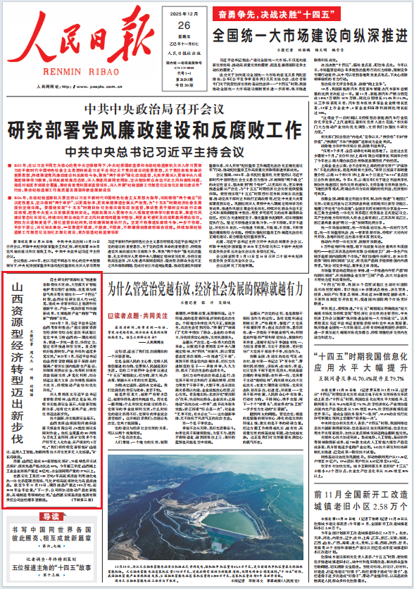 即日,人民日报山西分社推出特别策划,梳理2025年《人民日报》报道山西的三组关键词,从不同侧面回望山西的奋进足迹。