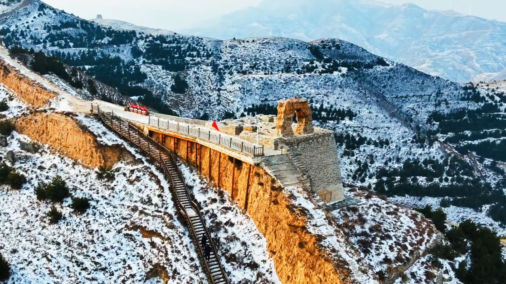 当千年长城被白雪裹上银纱