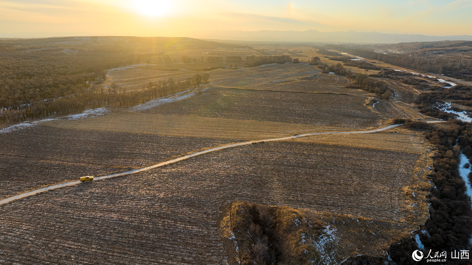 夕阳下,供电所的工程车踏上返程。