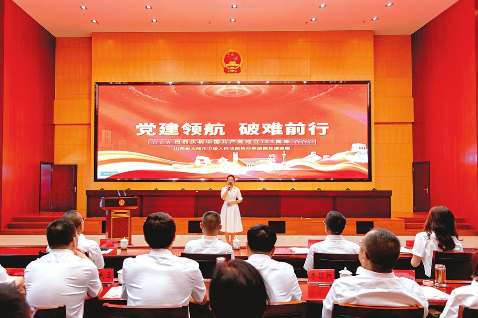 大同中院执行局党支部以党建标准化规范化建设为抓手,不断强化党支部政治功能和组织功能,让党支部成为执行攻坚的“战斗堡垒”、党员成为执行一线的“先锋模范”,切实为执行工作筑牢政治根基、凝聚组织力量。