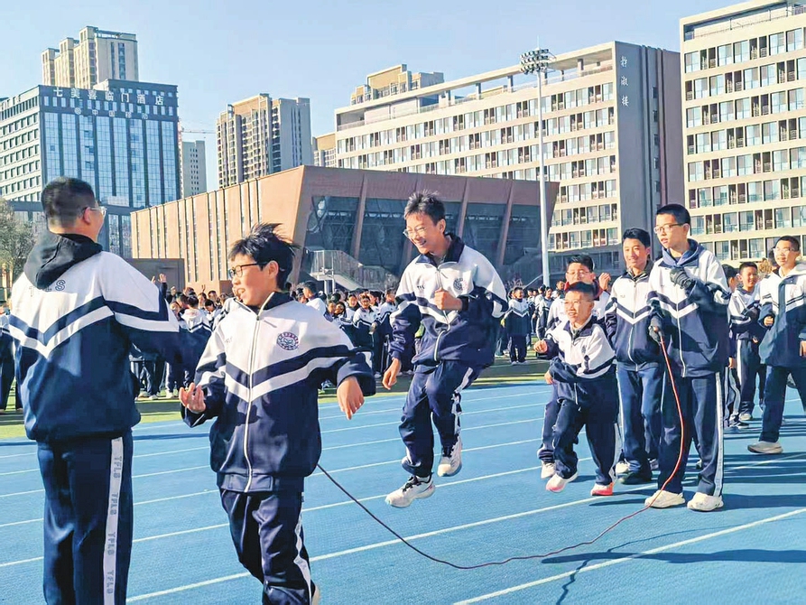 太原市外国语学校摄乐校区利用课间15分钟开展多样体育活动。
